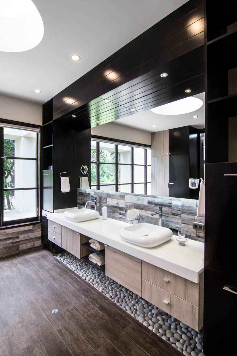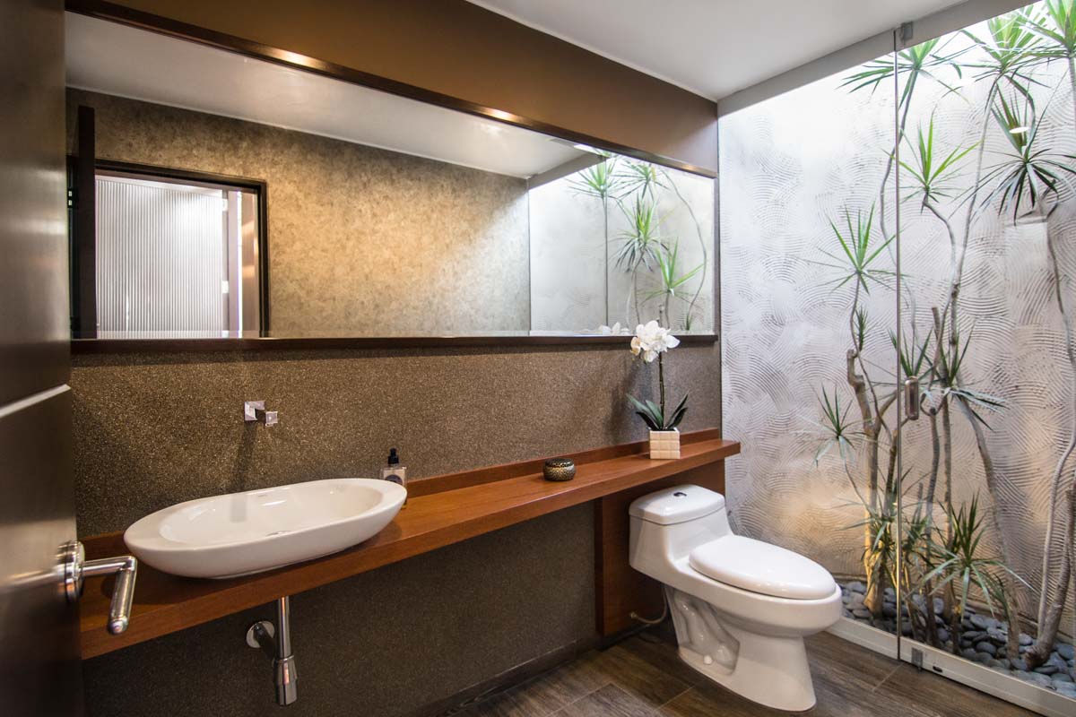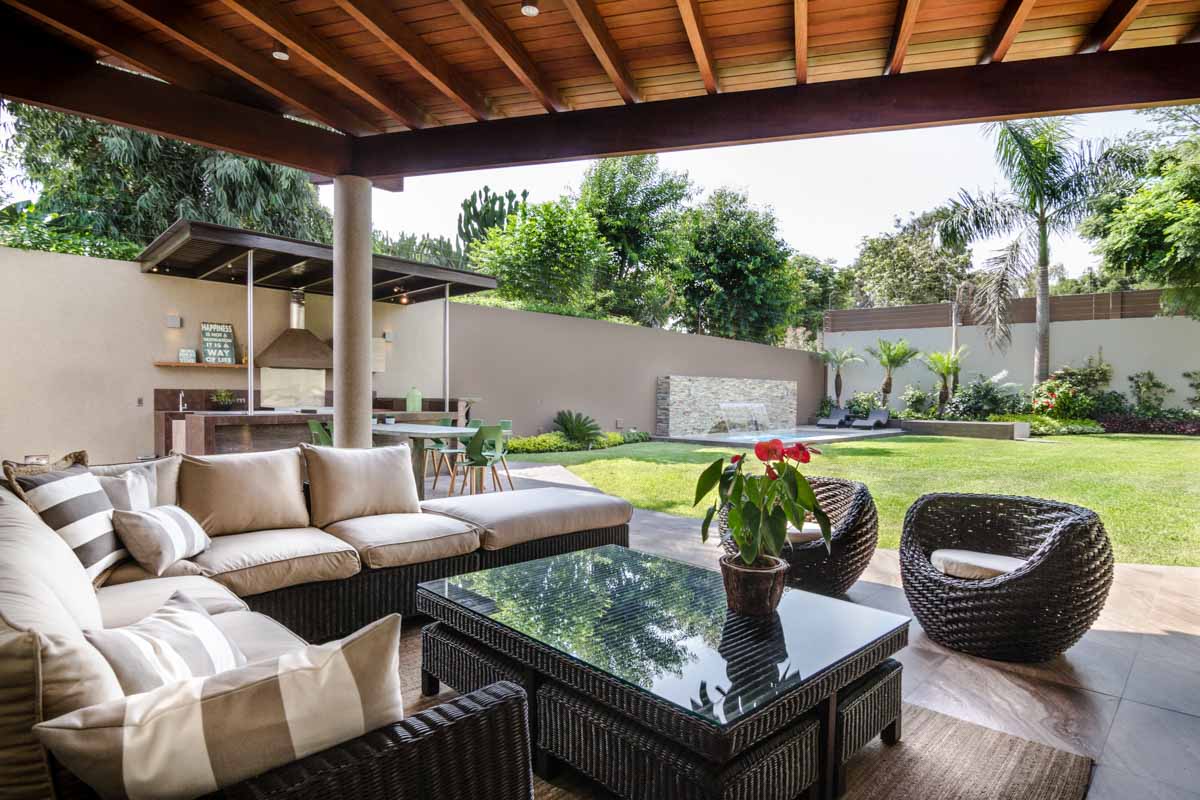 Remodelación de una casa de los años 80 con una transformación integral. La piscina, que ocupaba la mitad del jardín, se redujo en un 50%, ganando más área verde. Se renovaron baños, cocina, escalera y acabados, mientras que el paisajismo se adaptó al clima, integrando plantas nuevas y existentes, optimizando el riego tecnificado.