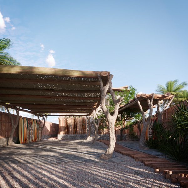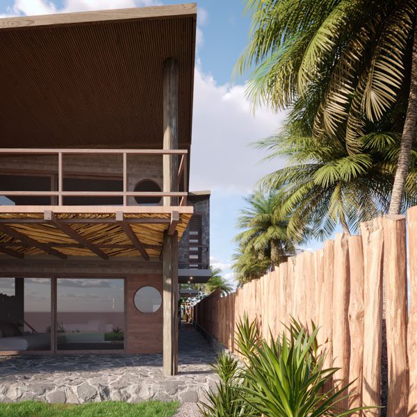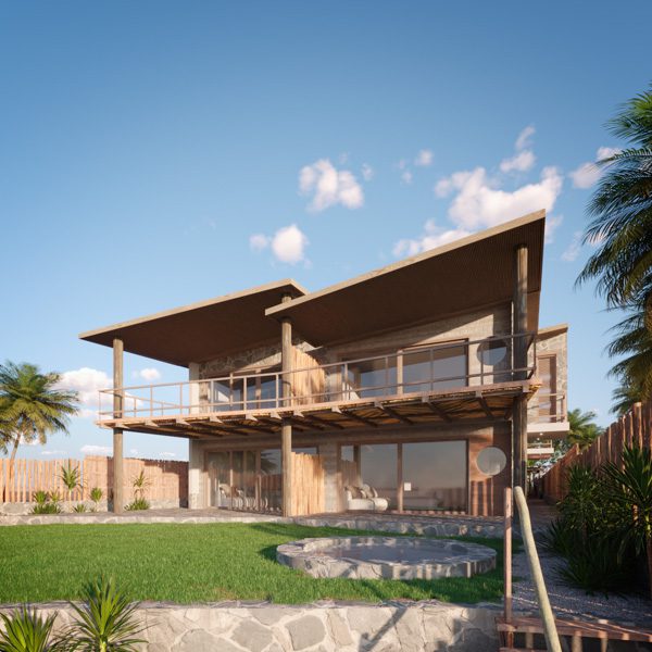 Este refugio en la Selva Baja está diseñado para integrarse con el entorno. Usamos terrazas, andenes y materiales locales, logrando un equilibrio entre naturaleza y arquitectura.