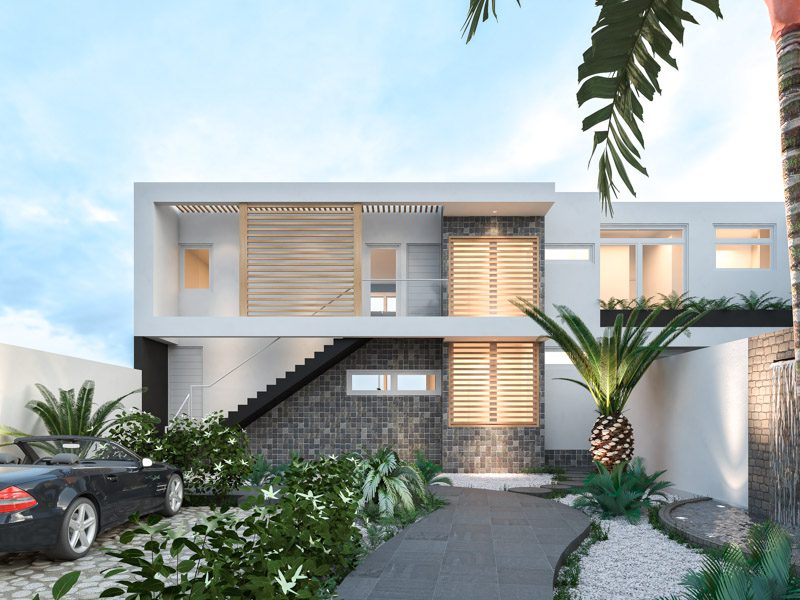 Diseñada con materiales neutros como piedra Talamoye y concreto visto, esta casa en San Bartolo combina simplicidad, elegancia y armonía con su entorno tranquilo.
