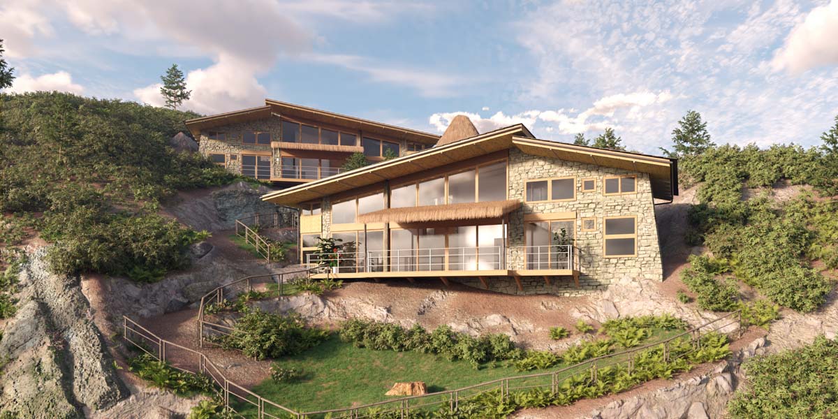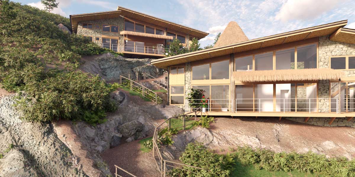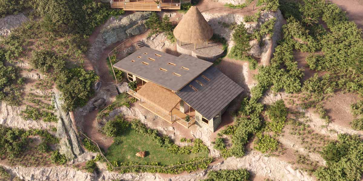 Este refugio en la Selva Baja está diseñado para integrarse con el entorno. Usamos terrazas, andenes y materiales locales, logrando un equilibrio entre naturaleza y arquitectura.